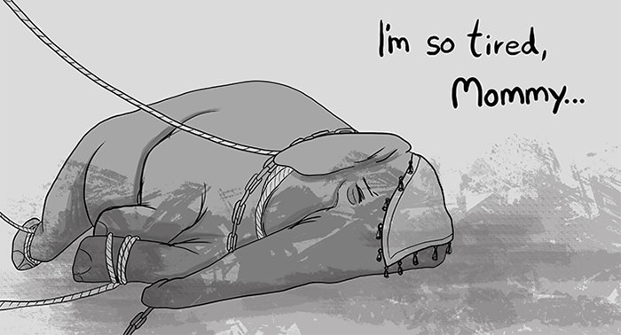 Jenny to get some answers concerning the idea behind this specific elephant comic cartoon. It turns out, the artist went over a photograph indicating a caught child elephant that moved her so deeply. It was tied up and seemed to shout in a scream when the purported trainers hit the poor animal.